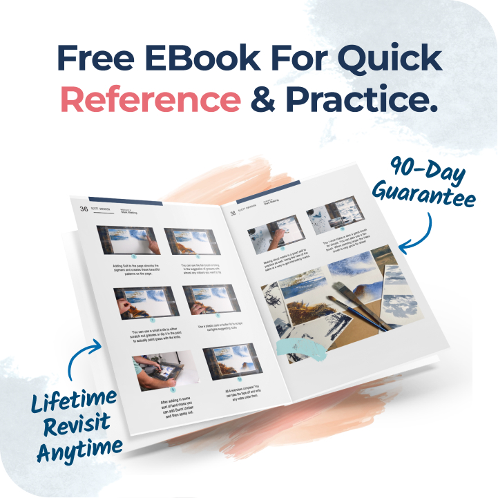 Get instant access to Scott’s flagship 12-hour course, the Companion eBook, and the Watercolour Collection. Everything is ready for you in one place, no hunting for supplies lists or piecing together random tutorials.