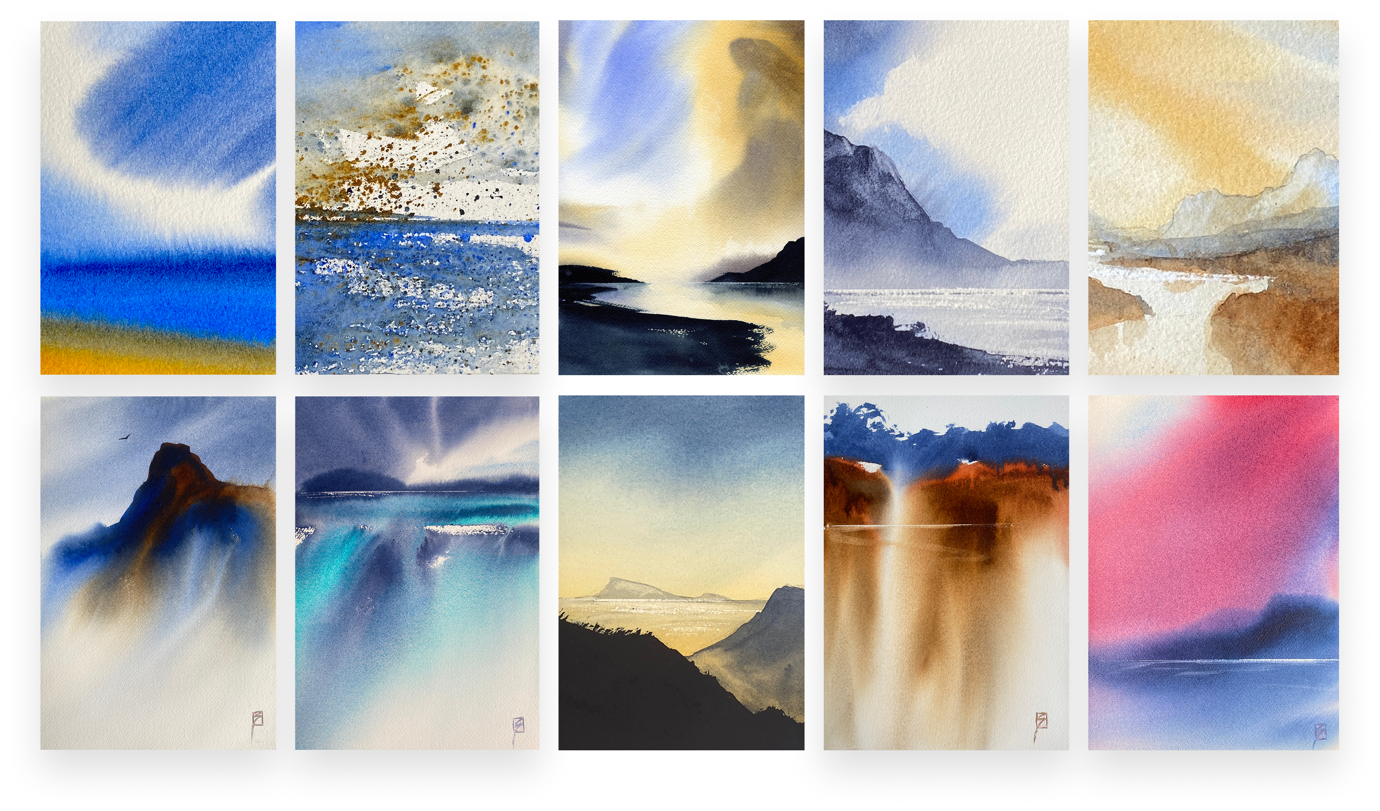 The Beginner Bundle is your guided path from first brushstroke to confident watercolour artist. In just a week, you’ll learn how watercolour works and create your own collection to display. Start with Watercolour Landscapes for Beginners to master key techniques through step-by-step lessons on trees, clouds, mountains, and lakes. The Companion eBook offers hundreds of reference photos, tips, and inspiration to support your practice. Finish with the Watercolour Collection, painting over 17 cohesive pieces that showcase your skill and artistic growth.